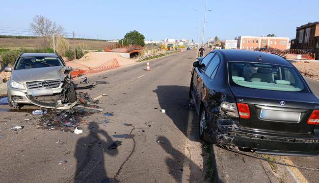 Dos de los cuatro carriles de la carretera EX-206, que conecta las localidades de Don Benito y Villanueva de la Serena, permanecieron este martes por la tarde cortados al tráfico tras el accidente múltiple entre tres vehículos en torno a las 17.00 horas. El siniestro tuvo lugar en el tramo de esta vía que se conoce como avenida Vegas Altas, en concreto, entre la glorieta de los empresarios y la del supermercado Al Lado. Se trata de la zona donde recientemente se han instalado dos plataformas peatonales para salvar el paso sobre el Arroyo del Campo y que todavía no están operativas.