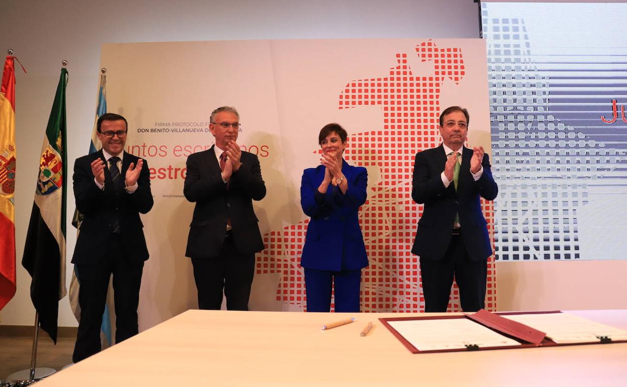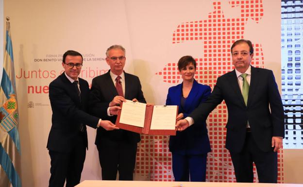 Don Benito y Villanueva rubrican su protocolo de fusión con el Gobierno, la Junta y la Diputación