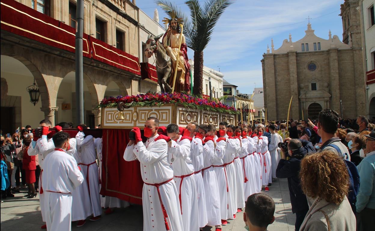 Fueron 24 los porteadores que llevaron a La Borriquita por las calles de la ciudad, hasta regresar de nuevo al templo, en medio de las palmas y las ramas de olivo.