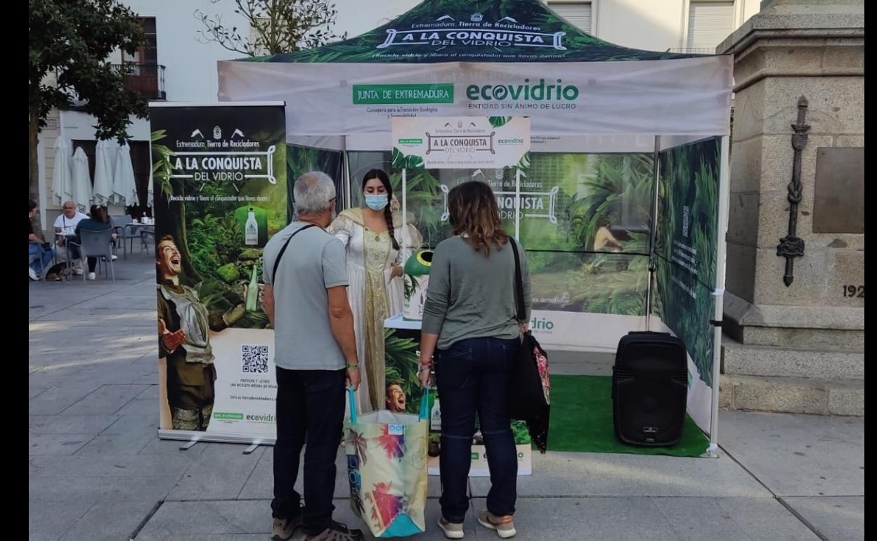 La campaña se ha llevado a cabo este fin de semana en la plaza de España, junto a la figura de Pedro de Valdivia. En una primera fase ha tenido lugar un juego interactivo a través de la web www.tierraderecicladores.com. En él los participantes, tras registrarse, debían responder a un cuestionario de ocho preguntas tipo test relacionadas con el reciclaje de vidrio. Entre los acertantes de las ocho preguntas se procederá al sorteo de una bicicleta Merida big nine 15 antracita talla L, valorada en 600 euros.