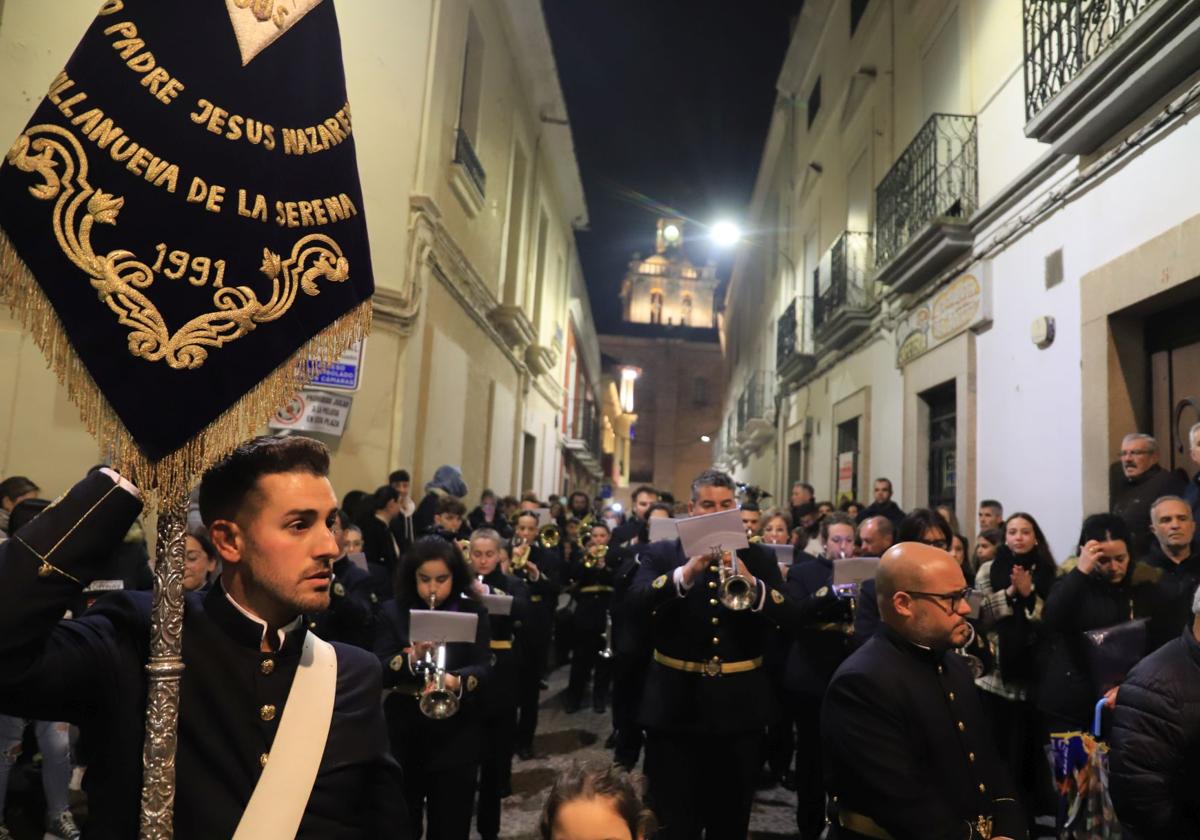 La música cofrade será protagonista de este encuentro en el que participarán cinco formaciones de gran nivel. Así lo destaca Ana Mansanet, concejal de Cultura, que detalla que asistirán la Banda Municipal de Música de Casas de Don Pedro, la Agrupación Musical Nuestra Señora de la Soledad de Pozoblanco y la Banda de Cornetas y Tambores 'Tres Caídas' de Madrid; además de las agrupaciones locales de la Banda Municipal de Música de Villanueva de la Serena y la Agrupación Musical 'Nuestro Padre Jesús Nazareno'.
