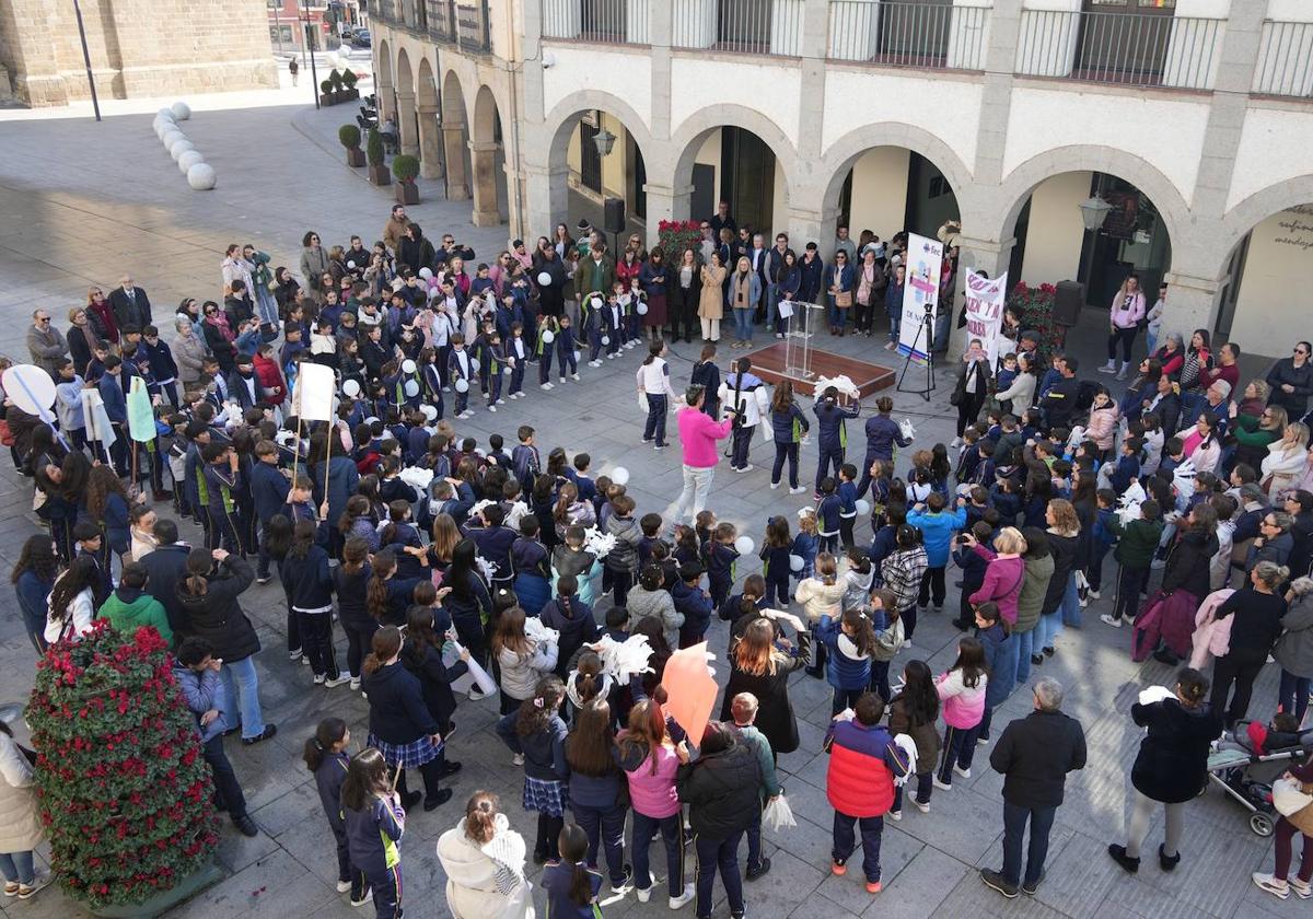 Con la lectura de un manifiesto en la plaza de España, el colegio San José finaliza la Semana de la Unidad y el Respeto. Una iniciativa bajo el lema '¡Haz el bien y no mires a quien!' que alcanza su séptima edición y que tiene como objetivo potenciar los valores para ser una buena persona y tener una buena convivencia.