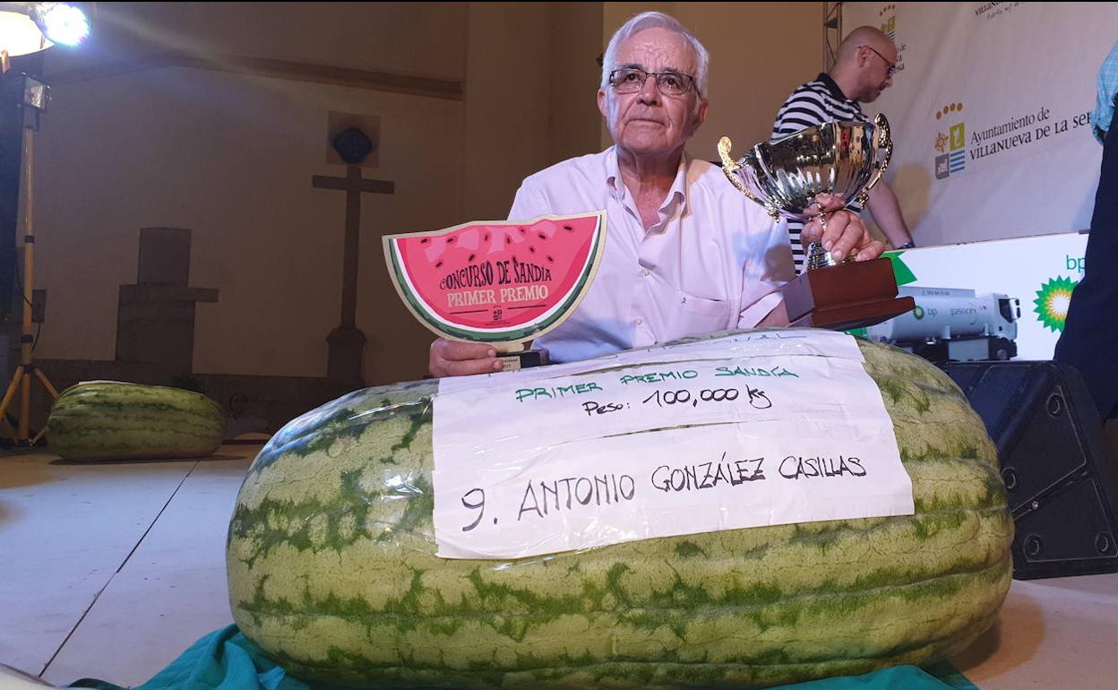 Así, en su 59 edición del consurso 'Rufino Mendoza Pineda' vuelven a ser tres los premios que se otorguen para ambas categorías. Concretamente, el primero pasa de 200 a 600 euros, el segundo de 150 a 400 y el tercero asciende a 200, frente a los 100 anteriores. Además, habrá un galardón adicional para la sandía que consiga superar el récord de peso actual, que pasa a ser de 1,000 euros frente a los 300 de otras ediciones anteriores.