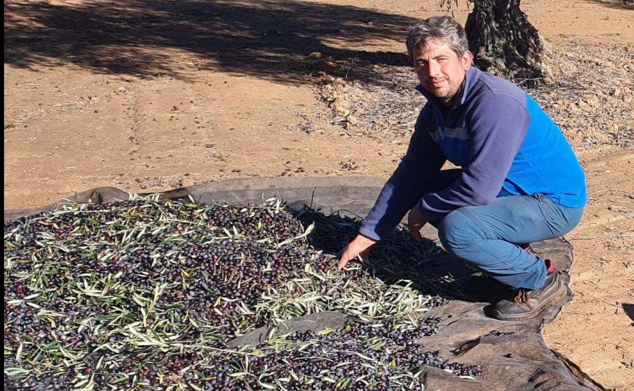 La campaña de la aceituna da sus últimos coletazos, en un año que este olivarero considera «excelente» a pesar de las pocas lluvias del pasado año.Sin ningún vínculo profesional con la agricultura, este vecino de Entrerríos, natural de Puebla de Alcocer, decidió hace seis años apostar por el campo como modo de vida. A partir de una pequeña explotación de olivos, en poco tiempo se ha hecho con 10.000 árboles, que este año han sabido devolverle con una gran cosecha el mimque éles dispensa los olivos a a lo largo de la temporada.