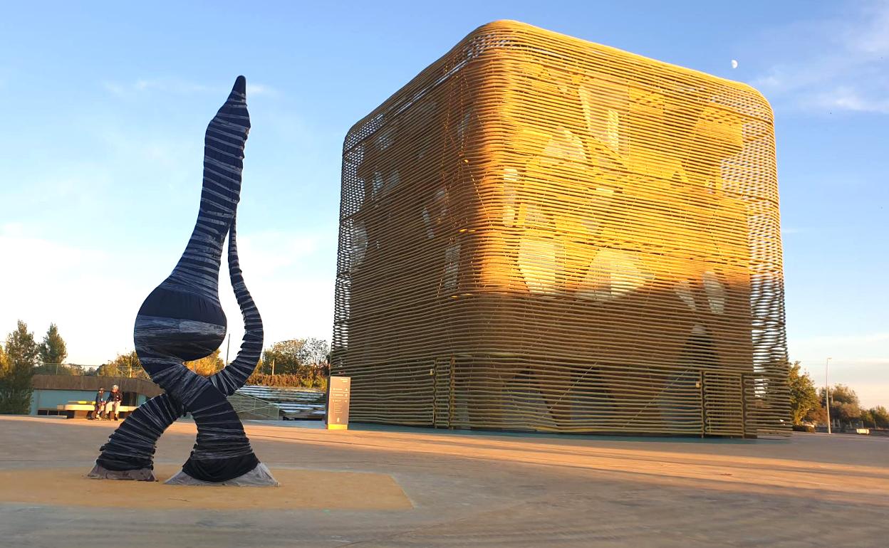 Se trata de una escultura encargada con motivo del 40 aniversario del premio literario que lleva su nombre. Una celebración que se debería haber conmemorado el pasado año, pero que la pandemia ha hecho que se retrase. Se trata de una obra de casi seis metros de altura, hecha de acero corten «con técnica de cortado, moldeado, soldado y lijado, tendrá un acabado en óxido fijado y barnizado», dijo Sansón durante la presentación de la maqueta en el Ayuntamiento de Villanueva de la Serena.