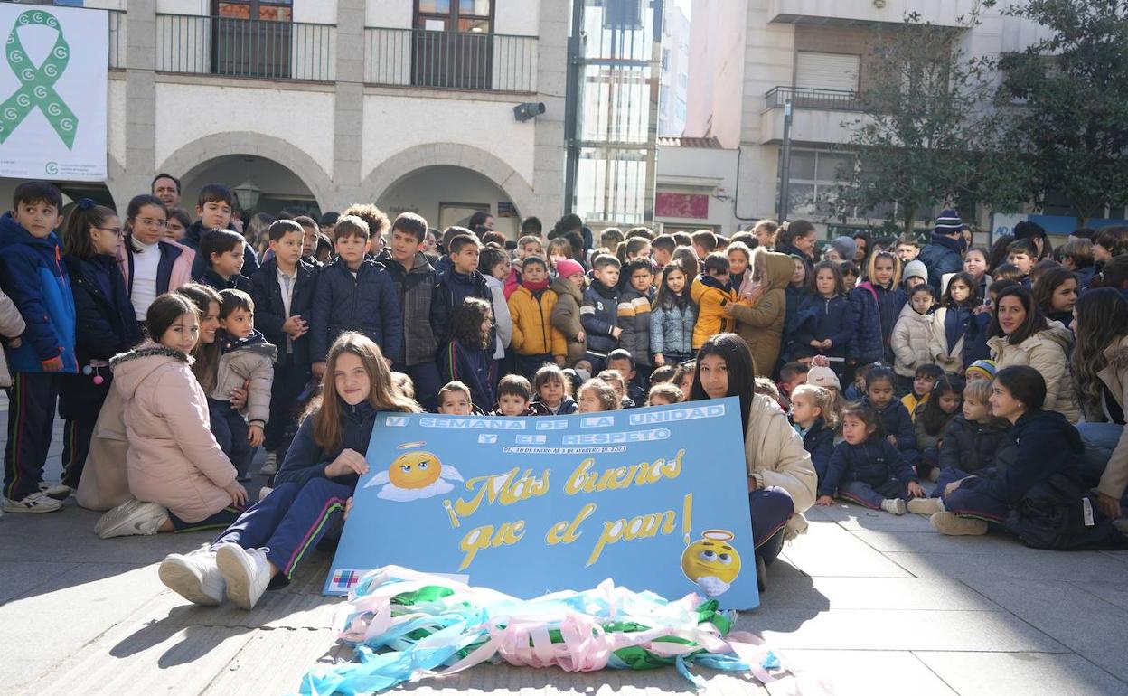Durante toda esta semana, estudiantes de Educación Infantil, Primaria y Secundaria han llevado a cabo diferentes actividades que han culminado con la lectura de un manifiesto esta mañana en la plaza de España donde han dicho no a aquellos que ridiculizan, a los que hacen daño a sus compañeros, «en definitiva, no a los abusones y sí a los buenos compañeros».