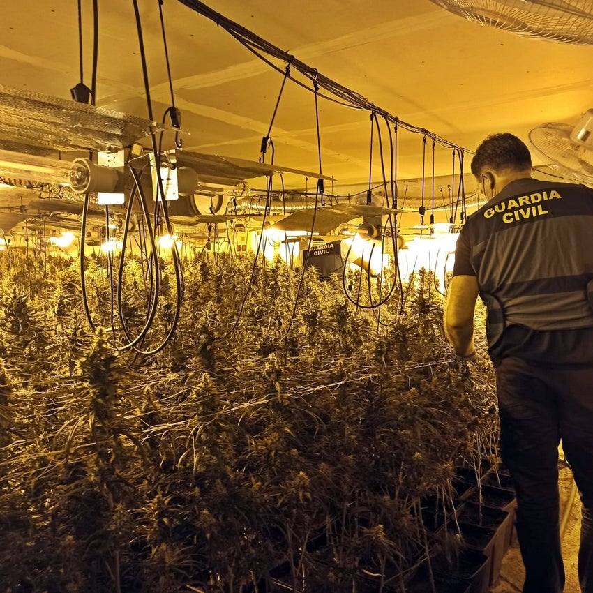 Más de una veintena de agentes procedieron a la entrada y registro de dos propiedades, donde hallaron 12 plantas en la casa y un invernadero en la nave perfectamente acondicionado para el cultivo de las 811 plantas de marihuana que allí se encontraban.
