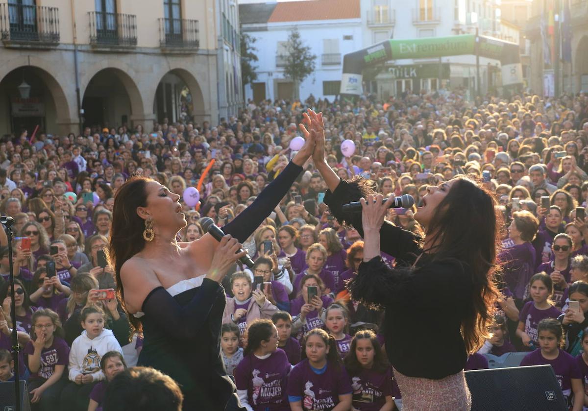 «No hay nada más poderoso que tanta mujer unida», dijo la deportista Jennifer Pareja, una de las tres madrinas de esta edición. La exjugadora de waterpolo se reconoció una enamorada de Extremadura y agradeció la invitación para amadrinar la cita junto a la judoca extremeña Conchi Bellorín y la árbitra villanovense Pilar Calderón. La representante local fue la encargada de leer un manifiesto en la plaza de España. «Las nuevas generaciones deben recoger el testigo en la lucha por la igualdad», dijo ante un público intergeneracional, pero eminentemente femenino. «Esta es una lucha de todos y todas», concluyó.