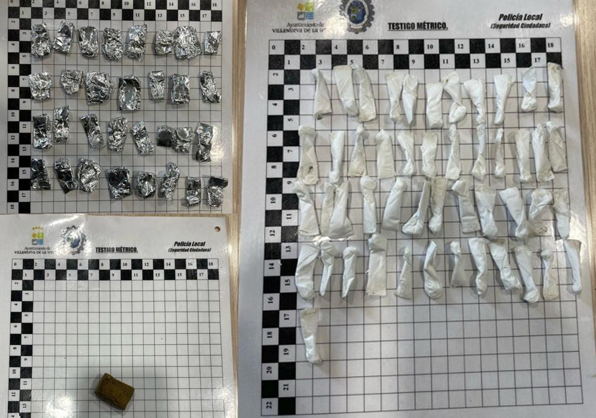 Ante esta situación, añade la Policía Local, se inspecciona el interior del vehículo, lo que se hace con la Unidad Canina, interceptado una cantidad importante de sustancias estupefacientes. En concreto, 48 dosis de cocaína, 31 dosis de heroína envueltas en papel de aluminio y una «piedra» que, según la Policía Local, podría ser hachís.
