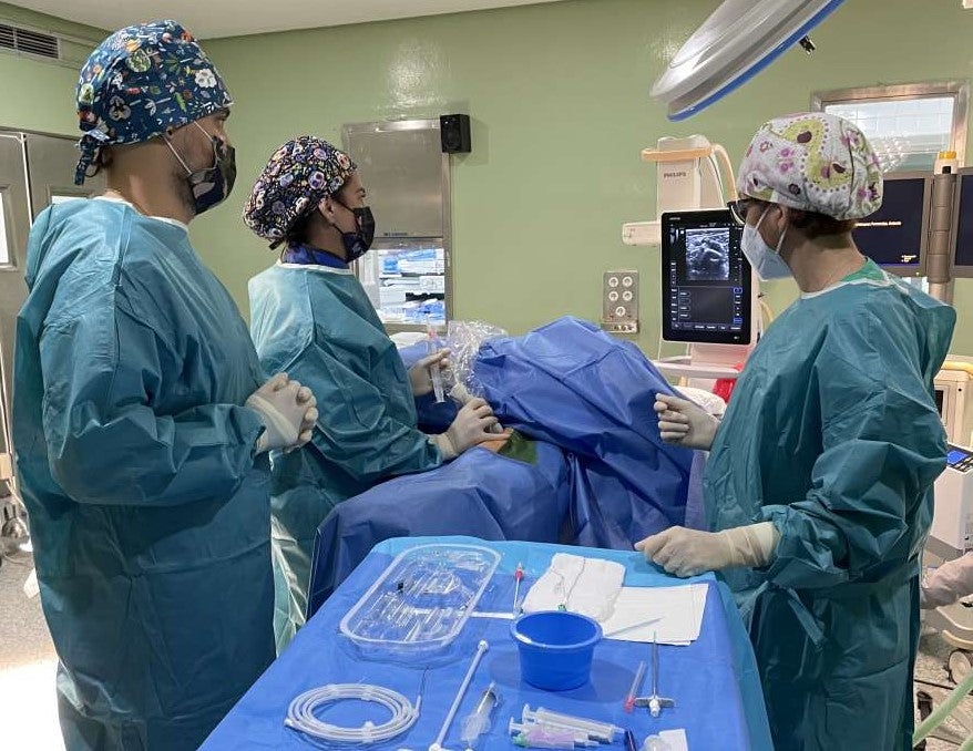 Para el primer implante, el equipo realizó la formación en la utilización de esta técnica en el Hospital Universitario de Cáceres a cargo del doctor. Sergio Moyano, jefe de Sección de Radiología Intervencionista y su equipo, con gran experiencia en la colocación y manejo de estos dispositivos.