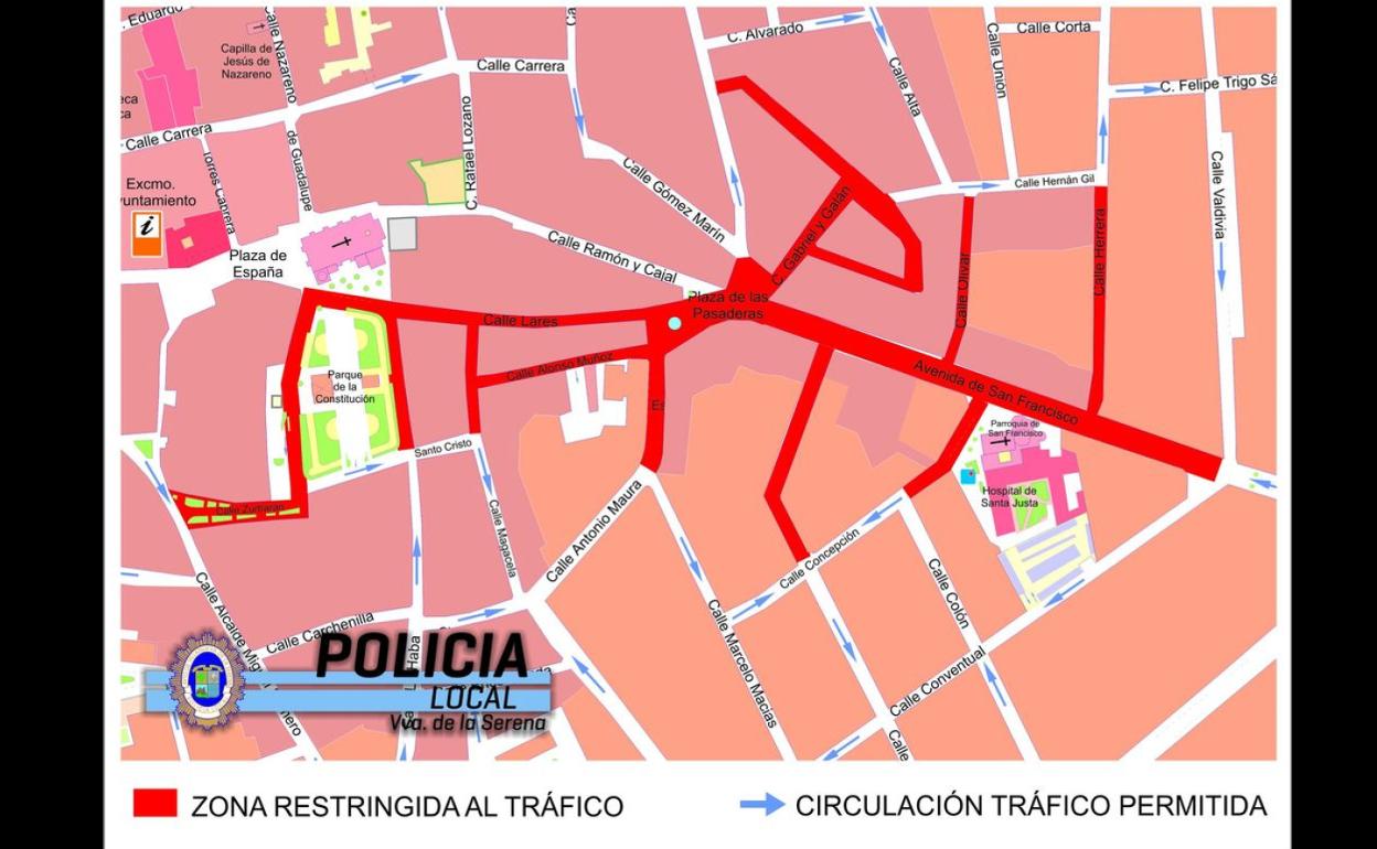 La Policía Local aconseja dejar el coche en casa y, en el caso de los visitantes, dejar el automóvil en los diferentes parking de la ciudadCon motivo del encendido navideño programado para esta tarde en Villanueva de la Serena, se ha establecido un dispositivo especial de seguridad y control del tráfico, donde la Policía Local activará desvíos en la circulación de vehículos desde las 18.00 horas, «ganando así espacios públicos para el uso y disfrute del peatón».