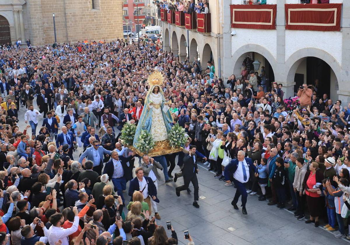 Veinte segundos. Ese es el tiempo que ha durado en este Domingo de Resurrección la procesión de 'La Carrerita'. El encuentro de la Virgen de la Aurora con su hijo, el Resucitado, ha vuelto a ser el momento más breve, pero también el más intenso, de la Semana Santa en Villanueva de la Serena. Veinte segundos en los que para muchos es imposible evitar las lágrimas de emoción por vivir un año más esta tradición que algunos contemplan en familia, los más jóvenes con amigos, pero todos con el mismo sentimiento que les lleva a sumarse a los 'Vivas' nada más terminar la carrera: «¡Viva la Virgen de la Aurora!, ¡Viva el Resucitado!, ¡Que viva La Carrerita!». Cánticos que se ven acompañados de fondo por el himno de España a cargo de la Banda Municipal de Música.