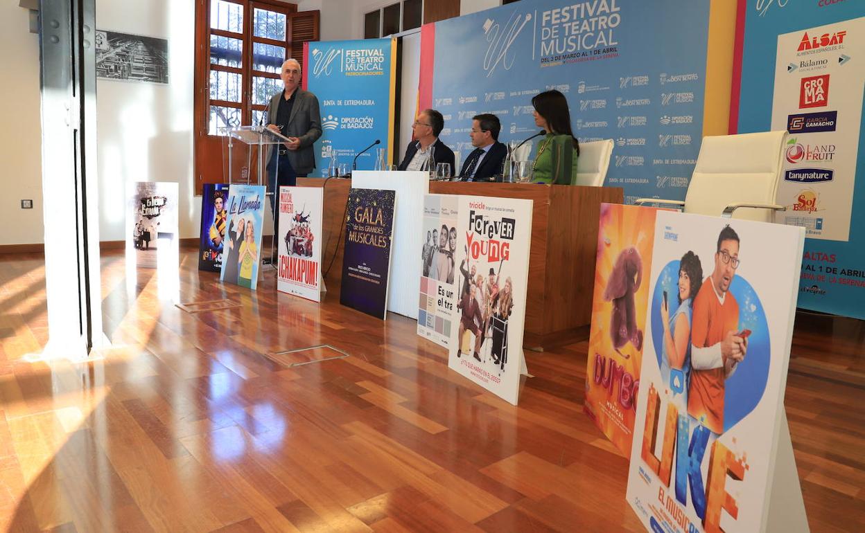 La cita se ha presentado en el palacio consistorial de La Jabonera, en Villanueva de la Serena, localidad que acogerá la clausura del festival con la obra 'Chakapum' a cargo de El Terrat, mientras que a Don Benito le corresponderá la inauguración con el espectáculo 'Gala de los grandes musicales' que tendrá como protagonista al extremeño Paco Arrojo.
