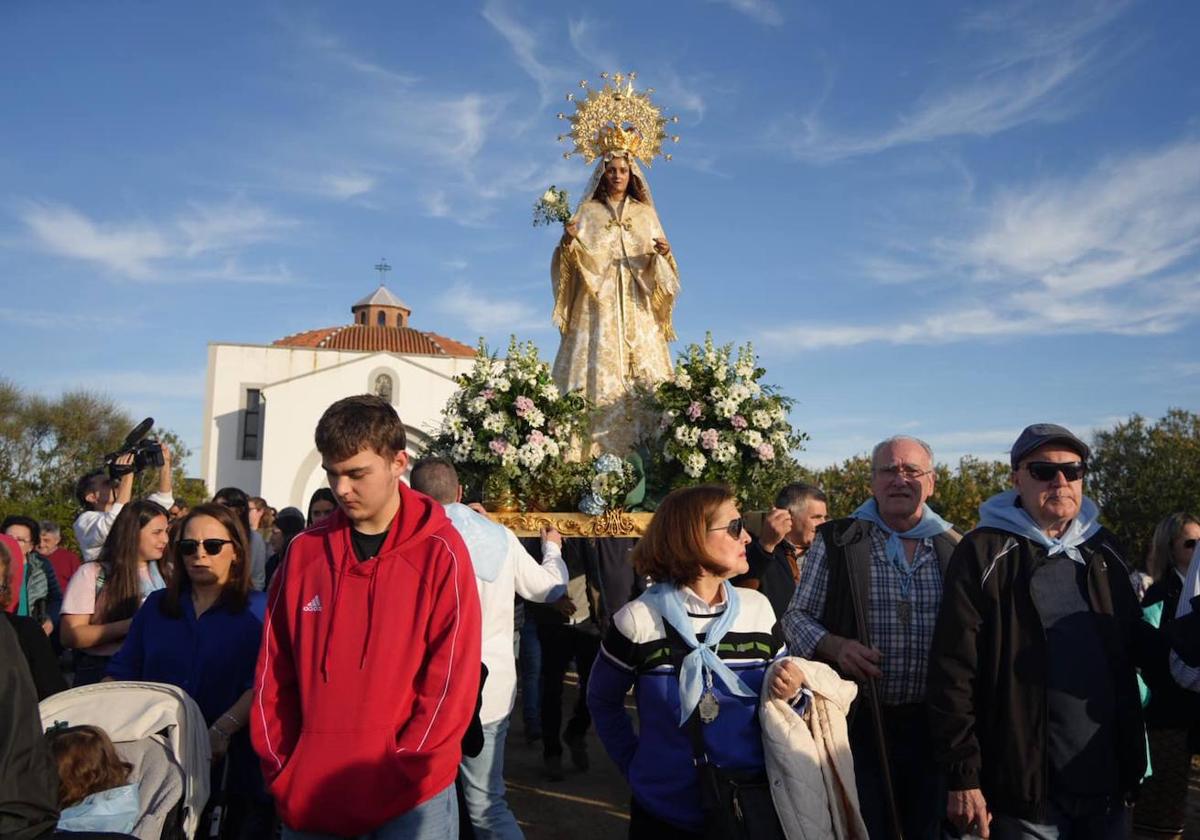 La primera parada fue a las puertas de la iglesia de la Santa Cruz y, desde allí, continuó en procesión acompañada por la Agrupación Musical Nuestro Padre Jesús Nazareno, hasta la parroquia Nuestra Señora de la Asunción, donde a la llegada de la Virgen se celebró la Solemne Eucaristía.