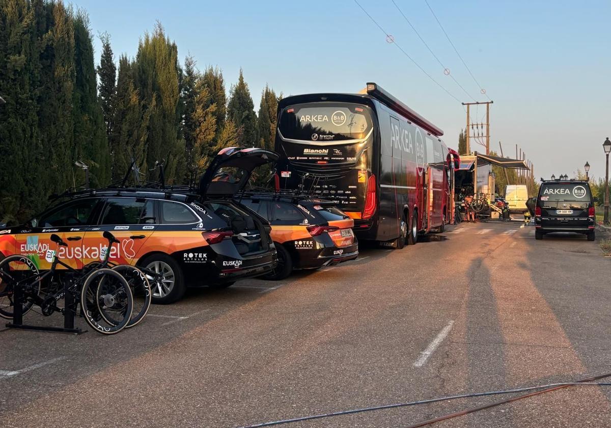 En esta ocasión, tras el final de la cuarta etapa, con meta en el Pico Villuercas, el Euskastel y el Arkea eligieron el hotel Cortijo Santa Cruz como parada antes de tomar la salida de este miércoles desde Fuente del Maestre.